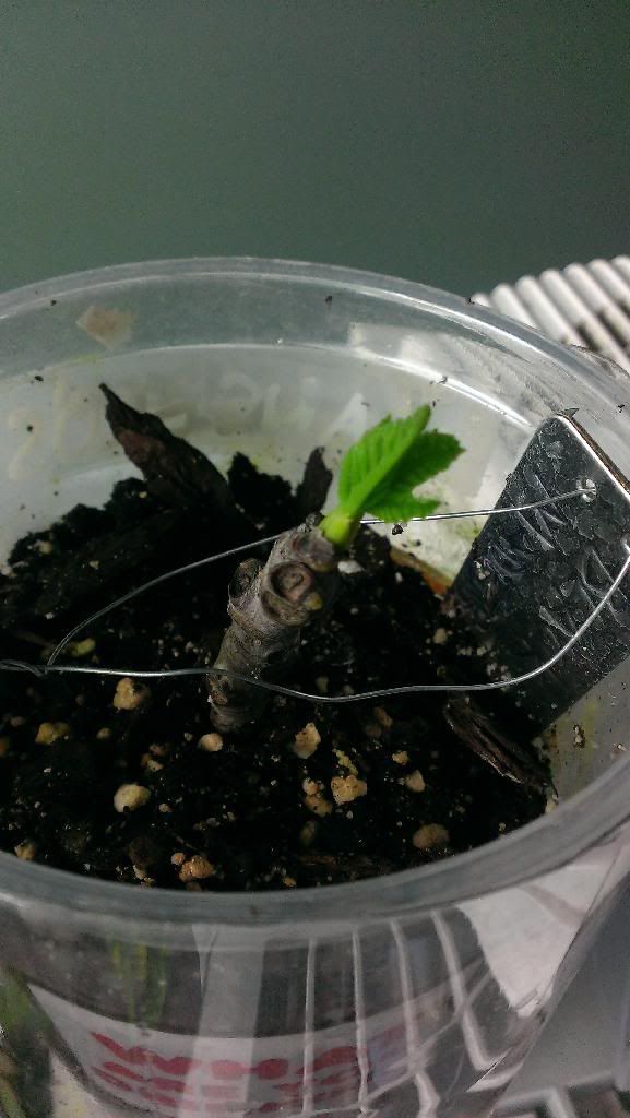 I tried a new rooting method a couple of weeks ago... when I put tip cuttings into spaghnum moss, the tips always seem to rot. So this time, I tried cupping the cuttings with the tip out and put them in a 2 liter greenhouse. So far, both cuttings are showing roots and the black madeira is leafing out!