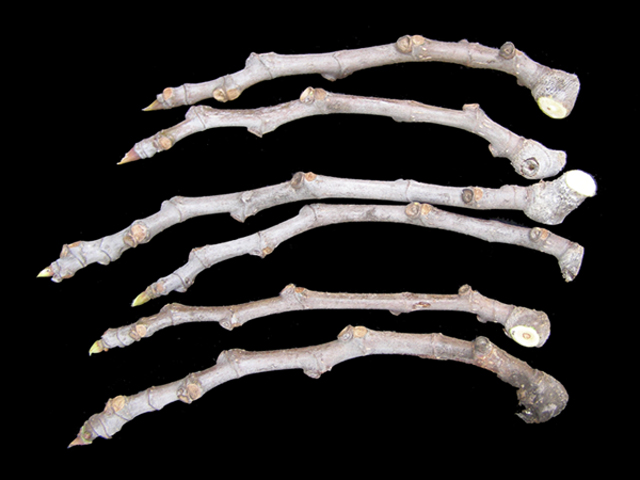 I decided to take several Vista cuttings with a little bit of 2nd year wood at the bottom, and see if the root better/faster than 1st year-wood-only cuttings. Some evidence seems to suggest that 2nd year wood roots better, but has a harder time pushing growth, hence the cuttings with both 1st and 2nd year wood. Should have a better idea in a couple months,