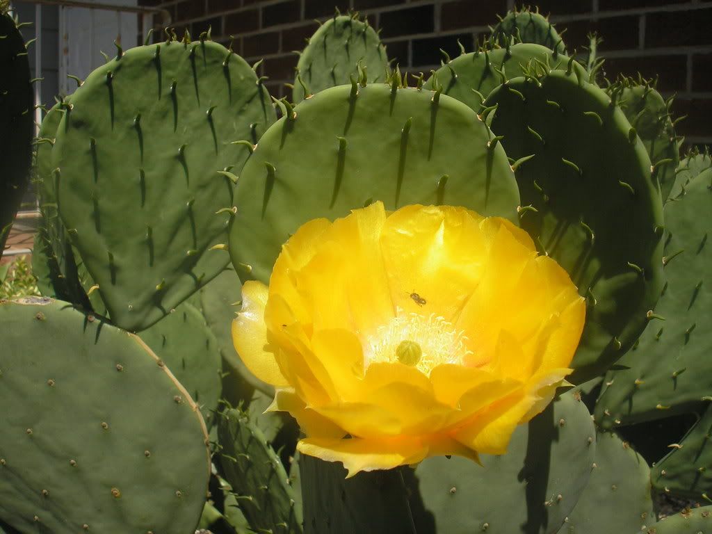 There was a fruit from last season, that is just ripening, I picked it and It tasted pretty good for out of season fruit... You can see the new crop start to come out, this plant, will have a few hundred prickly pears.. It's an old plant, been growing in same spot at least 25 years. More pics to follow as the season progresses
