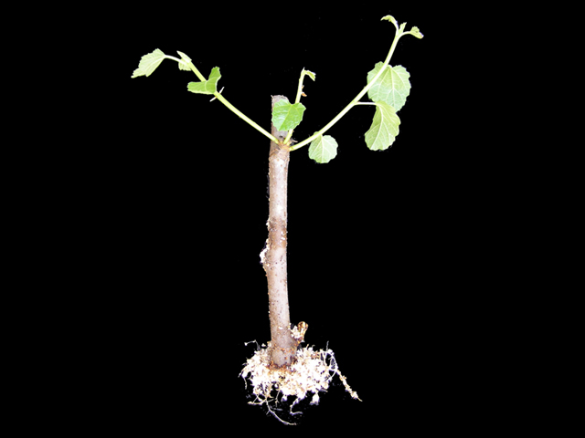 So, it is leafed out, with three new shoots, not a lot of roots, but OK. But, note the roots forming on the new shoots. At least part of this plant is busy growing roots.