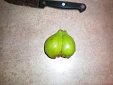 narrowed at the base rather than rounded; stalk short; color green toward the stalk,