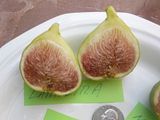 Second-crop figs medium or below, about 2 inches long and 1-1/2 inches broad, pyriform, with short, thick neck; eye partly open, scales rosy; skin delicate, checking at complete maturity, green flushed with violet; pulp deep red; seeds small. Second crop negligible without caprification."
