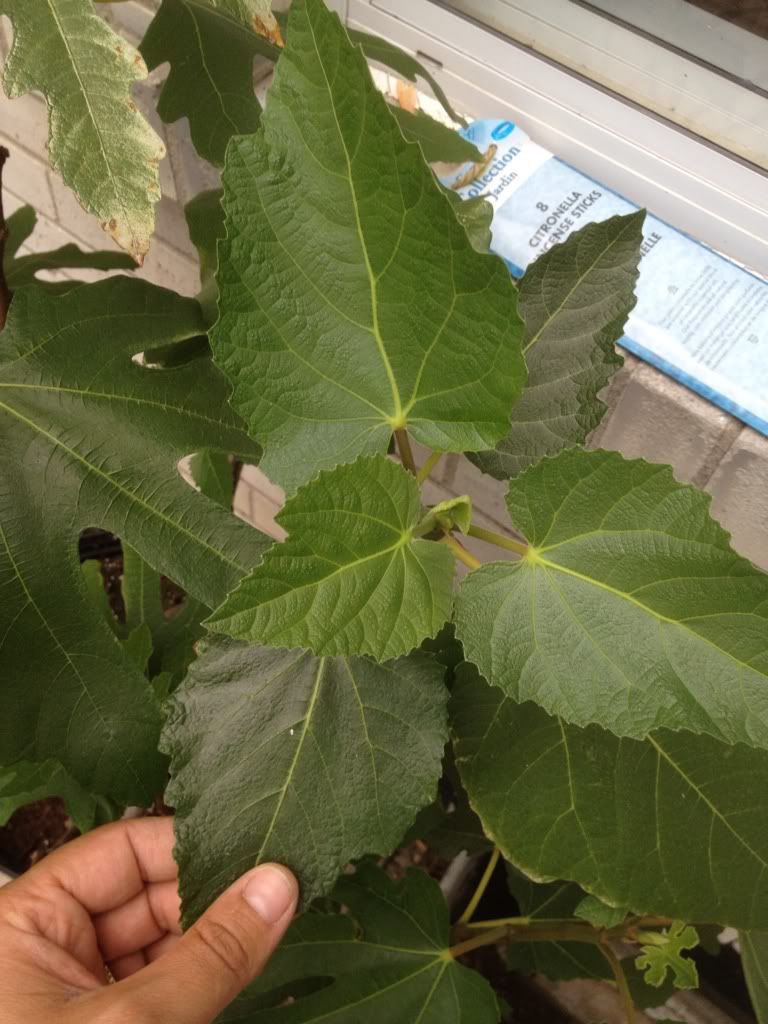 Good day!  I visited a local nursery north of me. Way back in the back of the nursery were 4 or 5 large fig trees in 5 gallon pots.  They were Brown Turkey (Jason's Favorite....hehehe), Black Jack, and Peter's Honey. The BT and BJ were $28 bucks.  The PH was $54.  The BJ had huge ping ball size figs.  The owner tried to get me to buy the BJ saying it was so sweet and so juicy.  I told him my flip-flop taste better than any BJ fig.  He looked at me and said, what do you know about figs?  After a 15 minute lesson from me on Figs, the different varieties, and my collection.  He stepped back and ask if he could buy some trees from me.  I just laughed and said no thanks.  <br><br>When I pulled out the BT tree, I asked him was the tree a true BT and he said he did not know.  I asked them why?  The owner said, most of their figs come from Monrovia inside a green pot.   He said, if the pot is black, then they do not know were it came from.  I told them they need to tell people thinking it is a BT and this is how names of figs get screwed up!  He agreed.  <br><br>Well, I got off my soap box and bought the tree for $28 bucks.  By looking at the leaf pattern, I knowt it's not a BT.  I'm a sucker for a good deal and to me this was a good deal.  This tree has nice red veins and long finger leaves.  So,  what type of fig is it?  I think it's Petite Negra however, the leaf pattern does not match any of my 4 PN trees.  My PN trees have huge leaves.  This tree has the longest and skinnest lobes of any of my trees.  There are a few tiny figs trying to pop but nothing to see this year.  I know the tree is root bound and has been feed lots of liquid fertilizer.  I will leave it in its pot until the Fall.  Anyone would like to take a stab at what tree this is?<br><br>thank you in advance.<br>