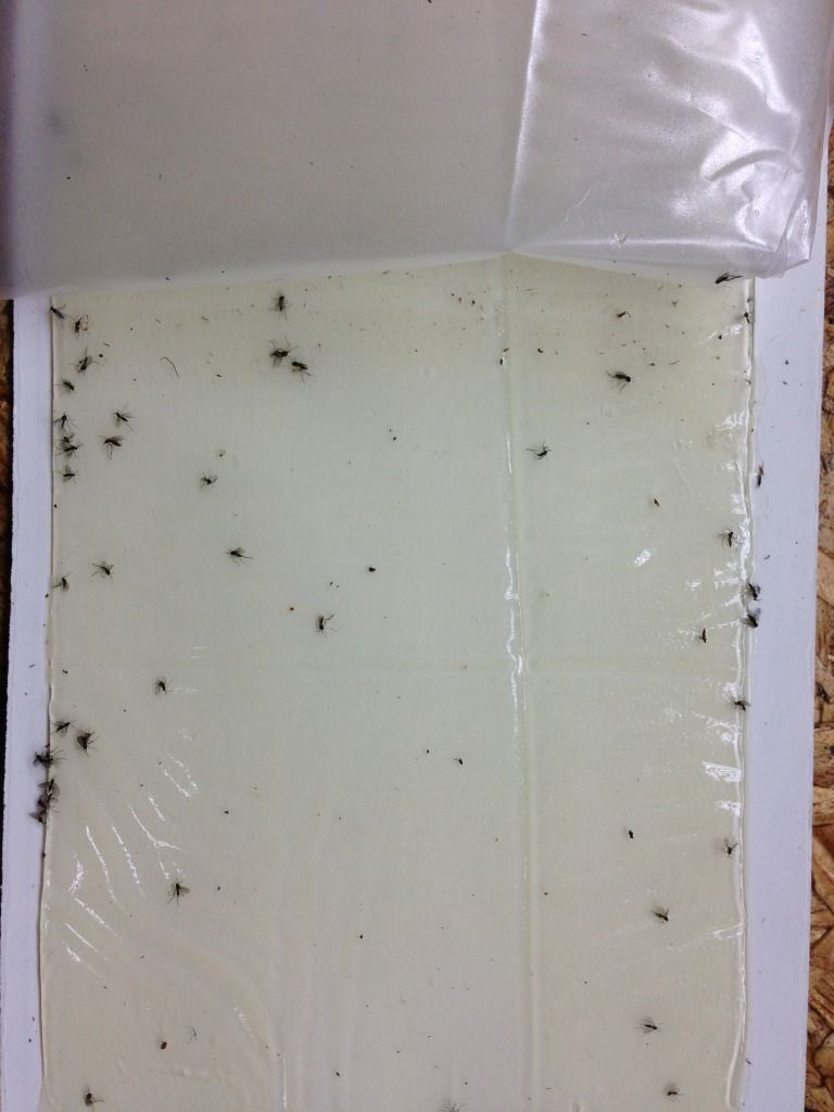 Sticky Traps are most effective when place horizontally on the potting media surface, although vertically positioned cards hung over the crop canopy are also effective and trap more of other types of insect pests as well. In greenhouses place the traps under benches, close to intake vents, near doorways and outside of the the greenhouse can give you more information to detect breeding areas.