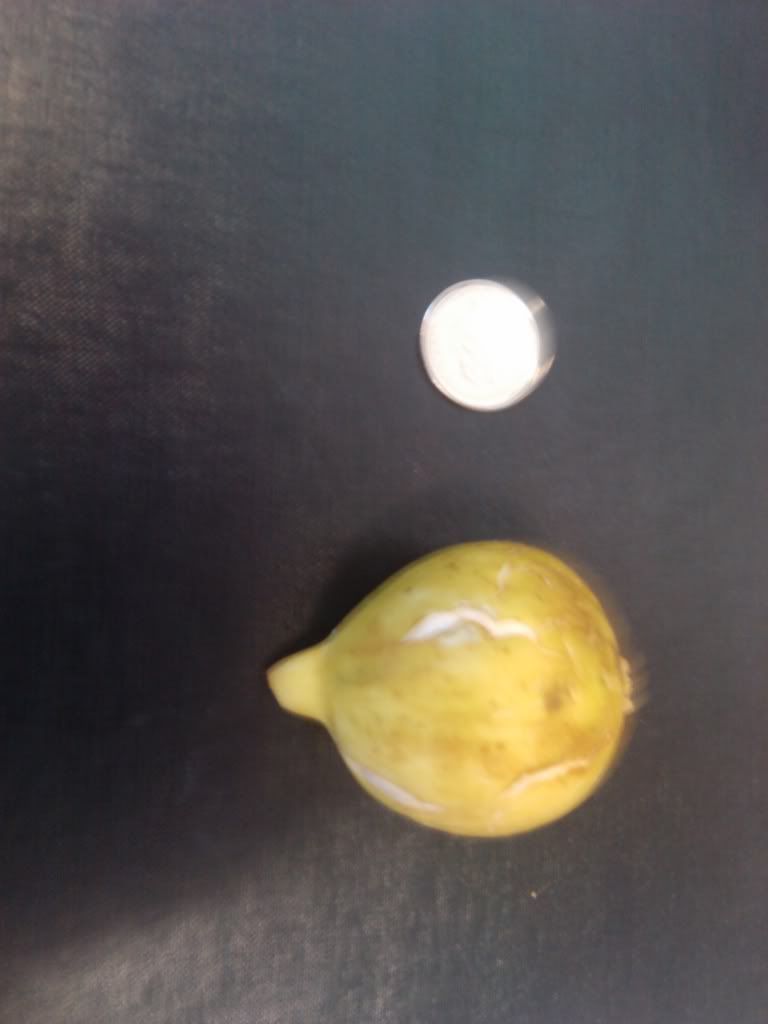 Aeilee here is another picture I found of another kadota breba I picked two weeks later during a very hot period. Notice the difference in the skin/pulp colour this one was delicious.