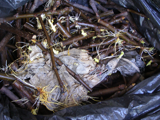 I potted up almost 60 cuttings today from these two bags of cuttings. Put in more wet paper, and we'll see what happens next.