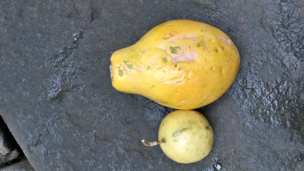 Egg fruit is named after its egg shape. It is bright yellow with a chalky flesh that I found grew on me after a while and became a bit addictive. Theresa hated it.