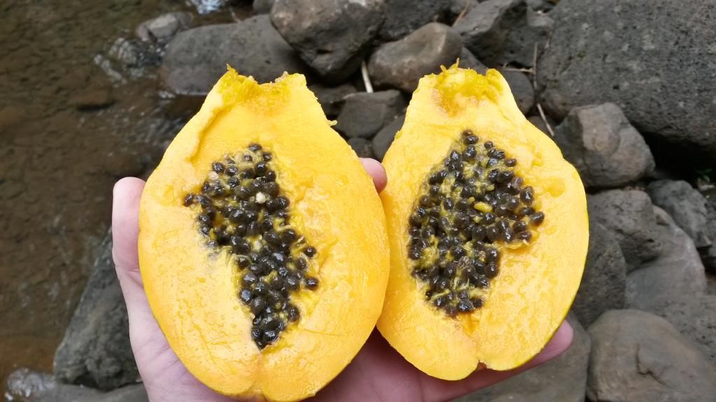 Theresa's favorite fruit was the lilikoi, or what we know on the mainland as passion fruit. It looked like a yellow racket ball with a gooey seedy interior. It had an extremely strong flavor and a beautiful scent. The seeds were a little bitter, but somehow added to the overall experience. We ate a lot of these during the trip.