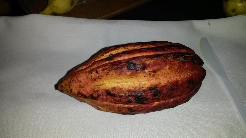 We found a cocoa pod and figured we would give it a go. The beans were really bitter and tasted nothing like chocolate (they needed to be fermented and roasted). The skin surrounding them were actually delicious and sweet.