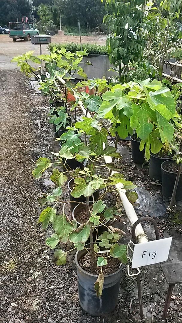 I thought I would share some of my wife and my adventures from our trip to Kauai a few weeks ago. We were there for a week and hit up several farmers markets. We did find a few fig trees at one of the nurseries. If I remember correctly, the varieties were kadota and texas everbearing. I only saw one actual fig tree planted in someone's yard, and that was a bayfront home in Hanalei Bay. It was gated, so no way I could check it out up close.