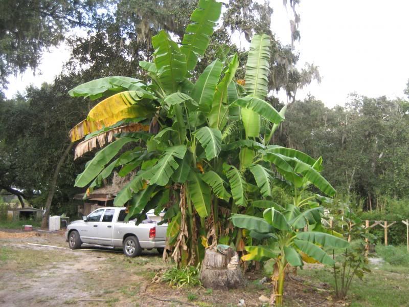 Right....when I cut the stalk down I just chunk it up and throw it back in the clump. It is a couple hundred pounds worth of stem. They actually make too many pups so have to kill a few off to keep the numbers down. Basically you have the king, or queen if you prefer...an heir and a spare. So you have the big guy a smaller 10' high right next to it and a small pup. There are 3 mains in that clump....bananas prefer to be in a clump and don't do so well by themselves.