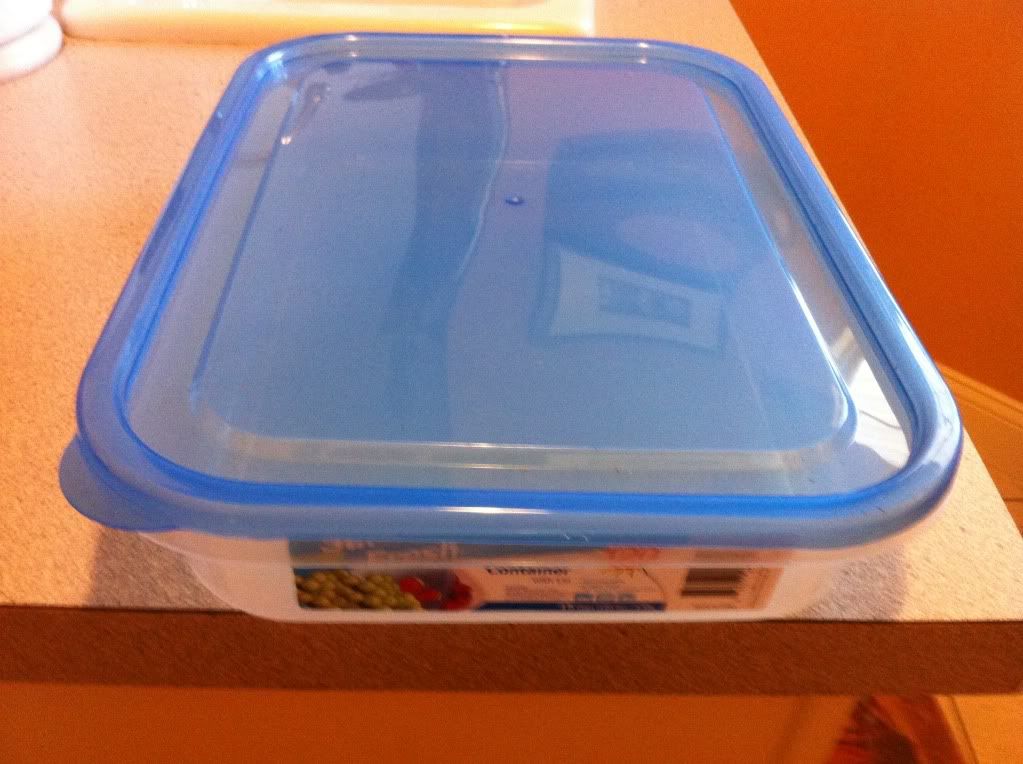 I made two more last night. It takes about 15 minutes once you have a template for the holes. You can get these containers with lids really cheap from the dollar store. I like cheap.