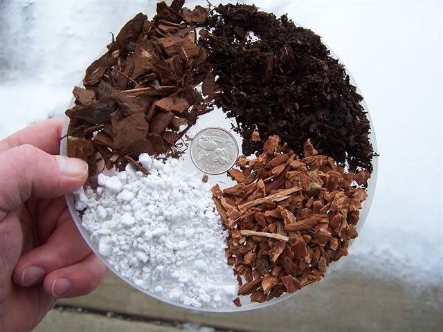 For trees larger than 2 gallons, I'll use 80% pine bark fines aka composted pine bark aka pine bark mulch, 20% coarse perlite. I'll throw in some pelletized lime to raise pH and an appropriate amount of slow release fertilizer, with minor ingredients.