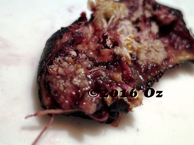 Functional male caprifigs of Ficus carica produce three crops of syconia per year: the summer profichi, fall mammoni and overwintering mamme that mature the following spring. Only the profichi crop produces pollen, and this is used to pollinate the Calimyrna orchards of California's Central Valley. [There are also reports of the mammoni crop of Ficus pseudocarica producing pollen in the fall.] The receptive mamme and profichi syconia are not pollinated, so endosperm tissue to nourish the wasp larvae in these crops must be initiated parthenogenetically. Whether they contain a mature seed or a wasp, the short-style flowers of caprifigs appear virtually identical in structure, and do not fit the definition of a typical gall. However, proponents of gall flower terminology argue that when the wasp induces the formation of nutritive endosperm tissue, the ovary interior is literally transformed into a minute gall.