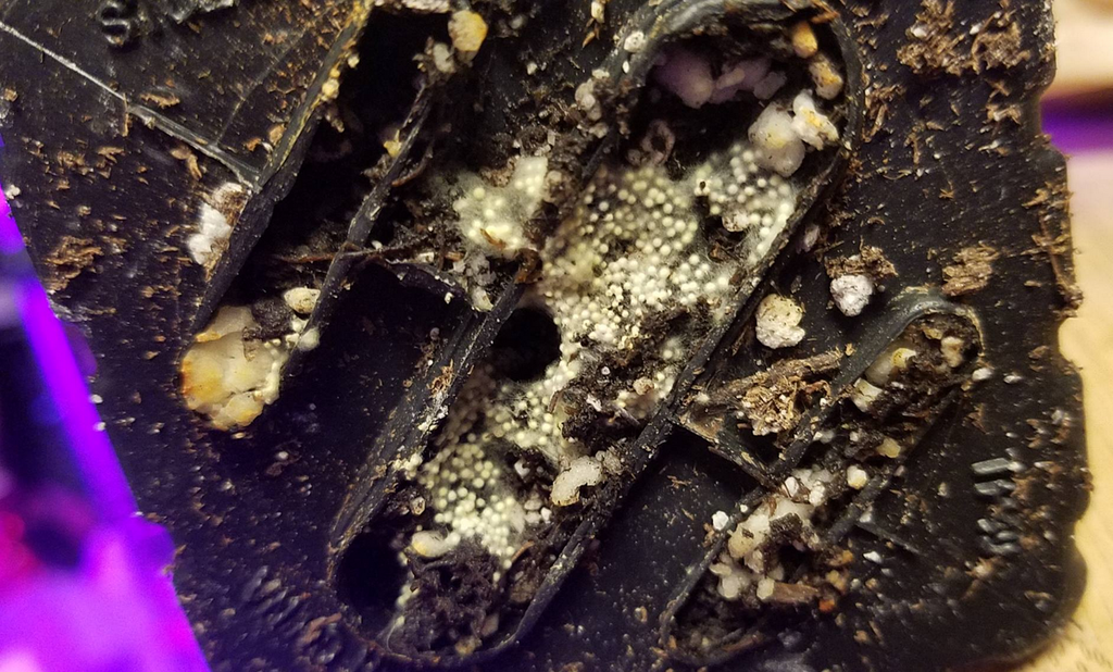 It is probably "yellow houseplant mushroom". The little balls are the start of a fruitbody, and mycorrhizal fungi do not produce fruitbodies very often from what I understand.