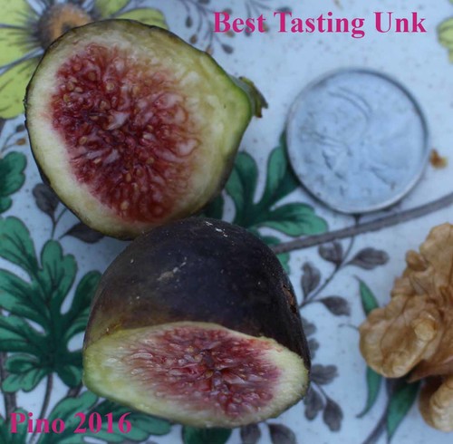This fig was a real surprise this year. The 1st year producing figs had about 8 figs and all were very nice taste.The cutting last year came from an Italian lady who shared what I was told was a very interesting white fig. Much to my surprise the fig turned out to be black. Hope someone recognizes this fig with its 3 lobed leaves.For now I am calling it "Best Tasting Unknown" because that is exactly what it is...lolComments and suggestions welcome!