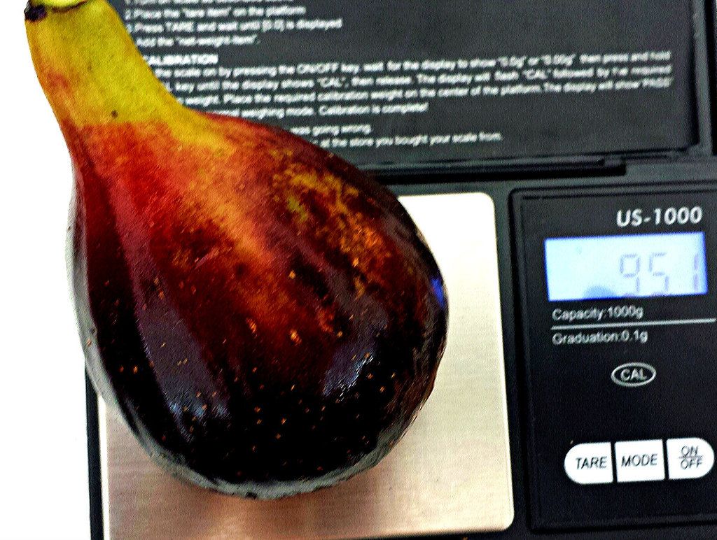 Napolitana Negra:  A large black fig with strawberry light red interior.  Very prolific, fig size 70-100 grams, closed eye.  Sweet, refreshing mild berry with some melon flavors.