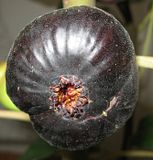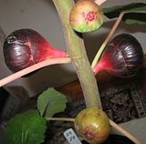 The "deformity" seems to be a case of a second fig growing out of the eye of the first fig. I have seen is occasionally in other figs. If memory serves me, the first time I saw it was in Yellow Neeches. In Raspberry Latte, it seems to manifest itself as a funny line more or less halfway down from the stem as seen in the second pix above. Doesn't seem to affect the fruit, other than making is larger, possibly. Not all fruit are that way, but it is more than an oddity in Raspberry Latte.